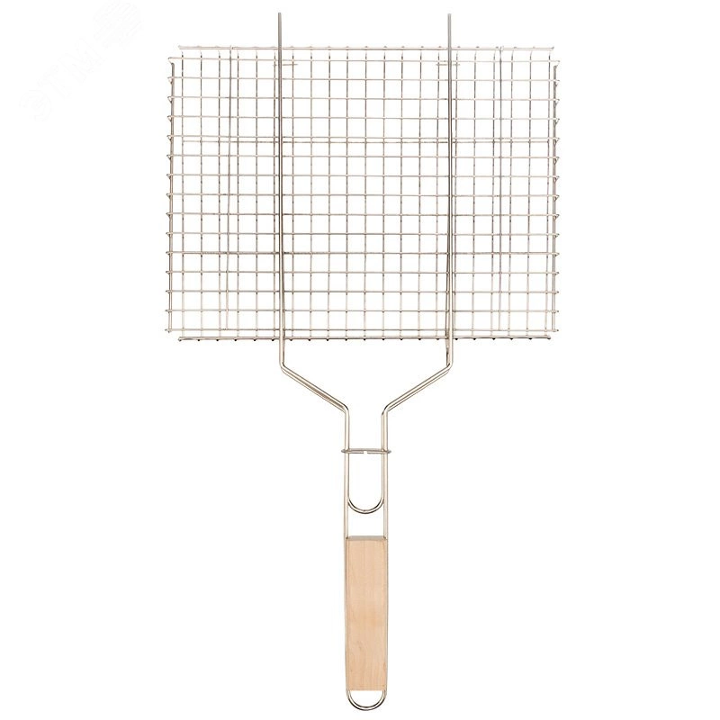 Решетка для барбекю СОКОЛ 35х26 см предназначена для приготовление овощей, грибов и мяса на огне. Выполнена из прочного металла с никелевым покрытием, которое предотвращает возникновение коррозии и потерю рабочих свойств. Ручка выполнена из натурального дерева. Удобно лежит в руке и меньше нагревается, что позволяет легко переворачивать решетку при приготовлении, не боясь обжечься. Изделие надежно удерживает продукты и прочно закрывается.