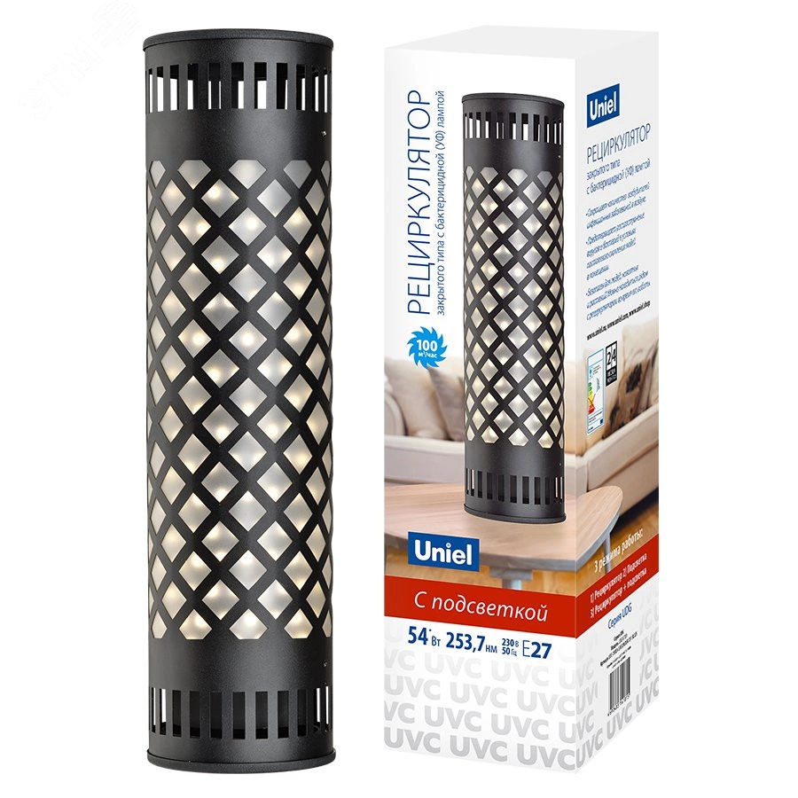Полное описание: Рециркулятор закрытого типа с бактерицидной лампой Е27 Настольный Без озонирования 253,7 нм UDG-V100A UVCB/4000K D02 BLACK Корпус черный ТМ