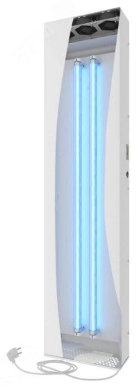 Рециркулятор обеззараживают воздушную среду при помощи установленных УФ-ламп, бактерицидный поток от ламп распространяется в замкнутом пространстве рециркулятора, через которое, принудительно, при помощи вентиляторов, прокачивается воздух из помещения. Рециркулятор воздуха оснащен счетчиком времени работы, который позволяет следить за сроком службы УФ-лампы и своевременно производить ее замену. Эффективная борьба с вирусами в общественных, медицинских и промышленных помещениях. Обеззараживание воздуха происходит благодаря работе газоразрядных бактерицидных УФ-ламп, с длиной волны ультрафиолетового излучения 254нм., которые способны очистить воздух от болезнетворных бактерий, вирусов (ОРВИ, ОРЗ, COVID19 и другие), и грибов. УФ-излучение в диапазоне длин волн около 254нм хорошо проникает сквозь стенку клетки микроорганизма и поглощается ДНК микроорганизмов, вызывая нарушение её структуры. В результате прекращается процесс воспроизводства микроорганизмов.