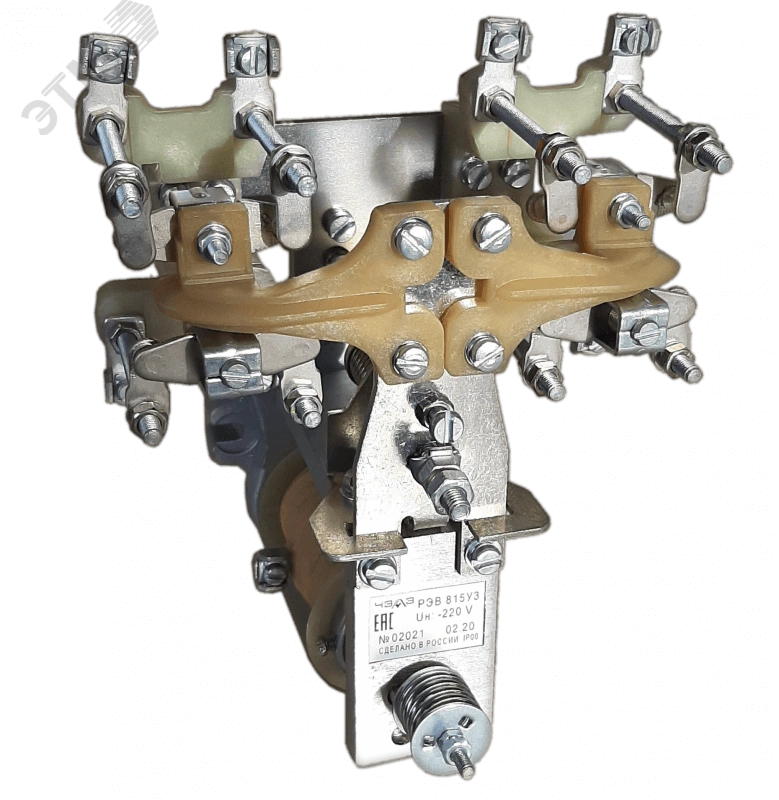 Реле электромагнитные серии РЭВ 815 применяются в качестве реле времени в цепях постоянного тока и поставляются отрегулированными на максимальную выдержку времени. В случае необходимости другой регулировки реле времени РЭВ815, она должна быть произведена на месте. Коэффициент возврата реле не нормируется. Контакты реле времени РЭВ815 серии РЭВ-810 позволяют на месте эксплуатации путем несложной пересборки одних и тех же деталей изменить исполнение контактов в пределах общего количества 2 или 4 (применение 4 'Р' контактов АО 'ЧЭАЗ' не рекомендуется, т. к. при этом надежная работа реле не обеспечивается). Реле РЭВ-815 применяются в схемах автоматического управления.