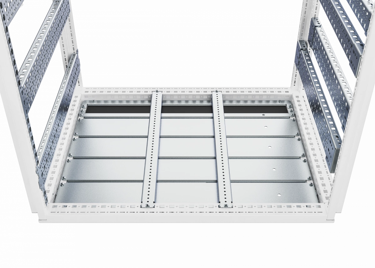 Рейка применяется для установки на нижнем основании шкафов RS52 по глубине или ширине шкафа для возможности крепления на них в последующем различного оборудования. Статическая распределённая нагрузочная способность одной рейки до 100 кг.