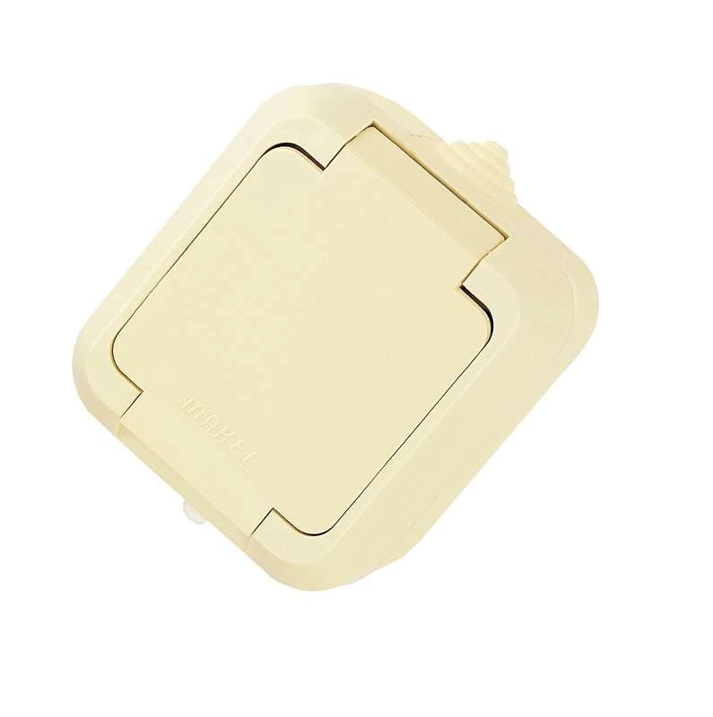 Розетка 1-м ОП 10А IP44 с заземл. с крышкой п/герм. крем. Makel 18204