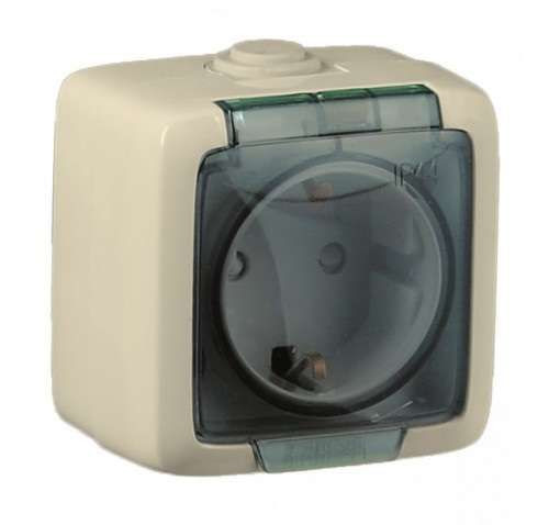Розетка 1-м ОП Альфа 16А IP44 250В с заземл. без защ. шторок с крышкой сл. кость HEGEL РА16-211-01