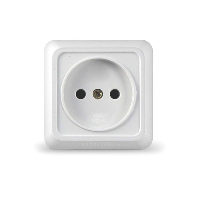 Розетка 1-м ОП Олимп 16А бел. UNIVersal О0022 представляет собой электроустановочный механизм одноместной розетки.