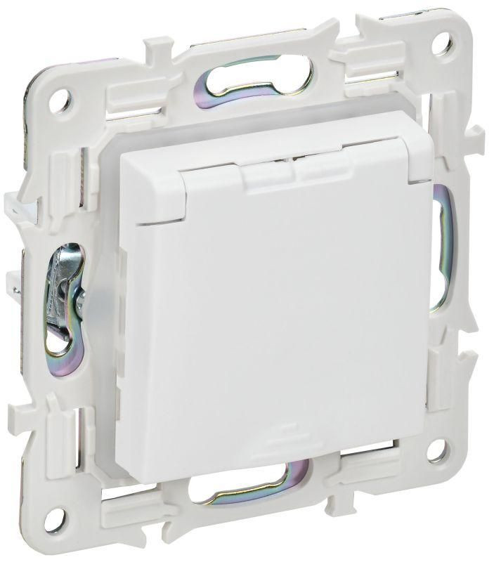 Полное описание: Розетка 1-м SKANDY 16А IP44 с заземл. защ. шторки с крышкой SK-R11W арктич. бел. IEK SK-R16-16-44-K01