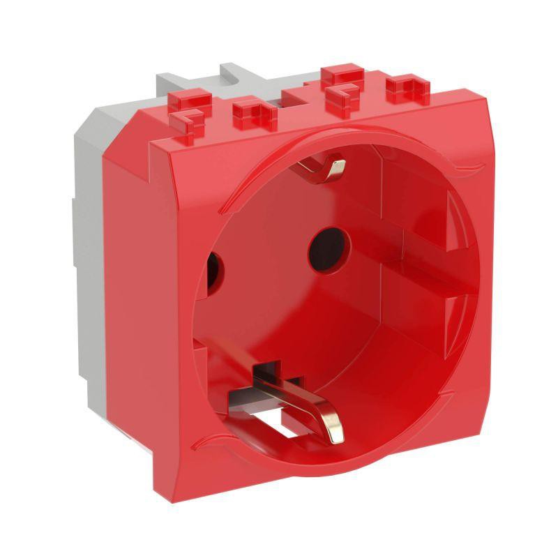 Розетка 1-м СП Brava 2мод. защ. шторки с заземл. красн. ДКС 76482R представляет собой силовую электрическую штекерную розетку.