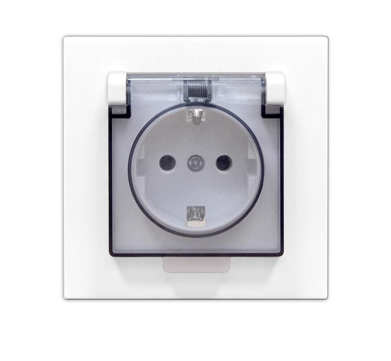 Розетка 1-м СП Афина 16А IP20 с заземл. с прозр. крышкой в сборе бел. Universal A0030