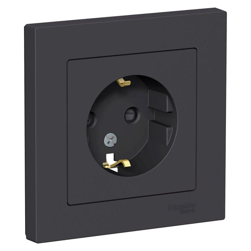 Полное описание: Розетка 1-м СП AtlasDesign 16А IP20 с заземл. защ. шторки в сборе карбон SchE ATN001044