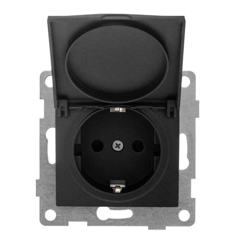 Розетка 1-м СП Bravo 16А 250В с заземл. защ. шторки с крышкой механизм графит GUSI С10Р91-010