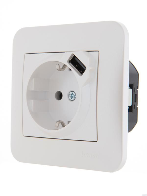 Полное описание: Розетка 1-м СП Karina 16А с заземл. с заряд. устройством USB механизм жемчуж./бел. перламутр. LEZARD 707-3088-181