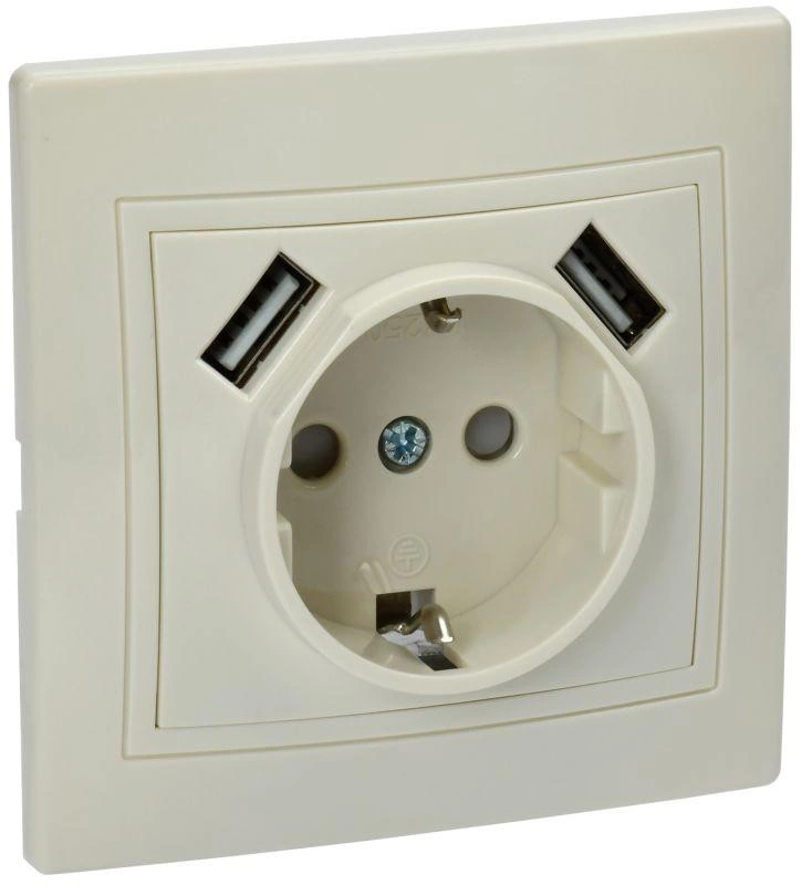 Полное описание: Розетка 1-м СП Кварта РЮш10-1-ККм 16А USBх2 2.1А с заземл. крем. IEK KV-R14-16-U2-K33
