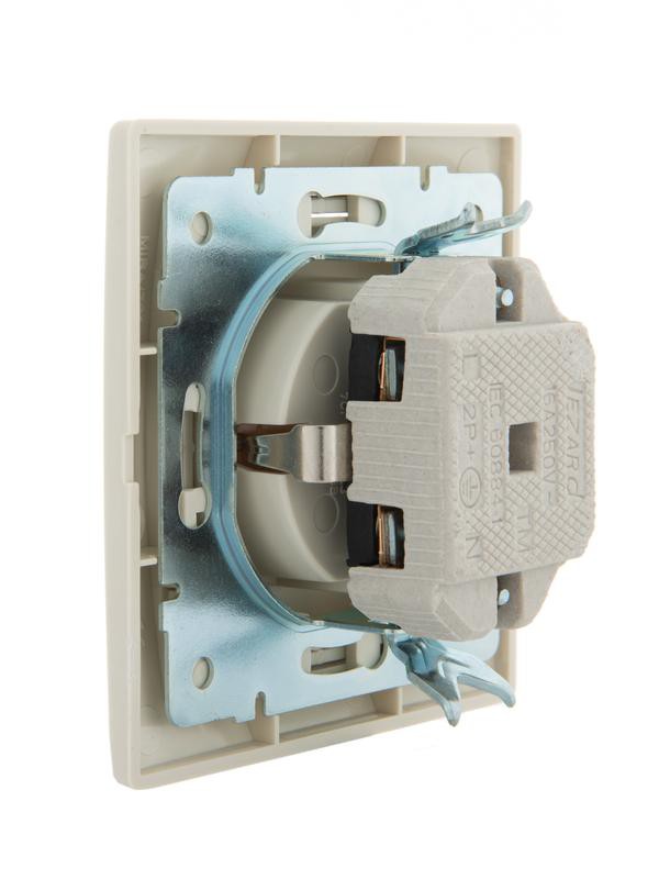 Корпус представляет собой форму из негорючего пластика, шириной 90 мм, с основой кремового цвета и декоративной рамкой. С откидной защитной кышкой. Основание керамическое. Подпружиненные лапки крепления обеспечивают комфортный и легкий монтаж изделия. Предусмотрена возможность установки без применения монтажной коробки.