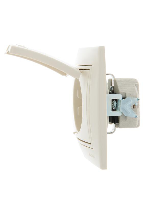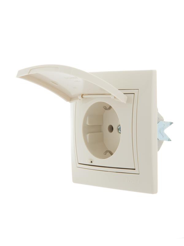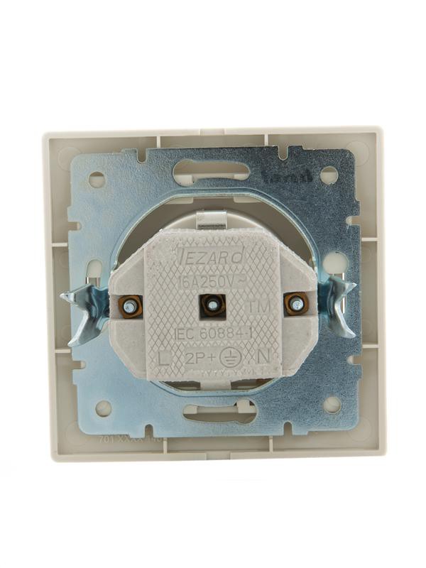 Розетка 1-м СП Mira 16А IP20 с заземл. с защ. крышкой со вставкой керамика крем. LEZARD 701-0303-123