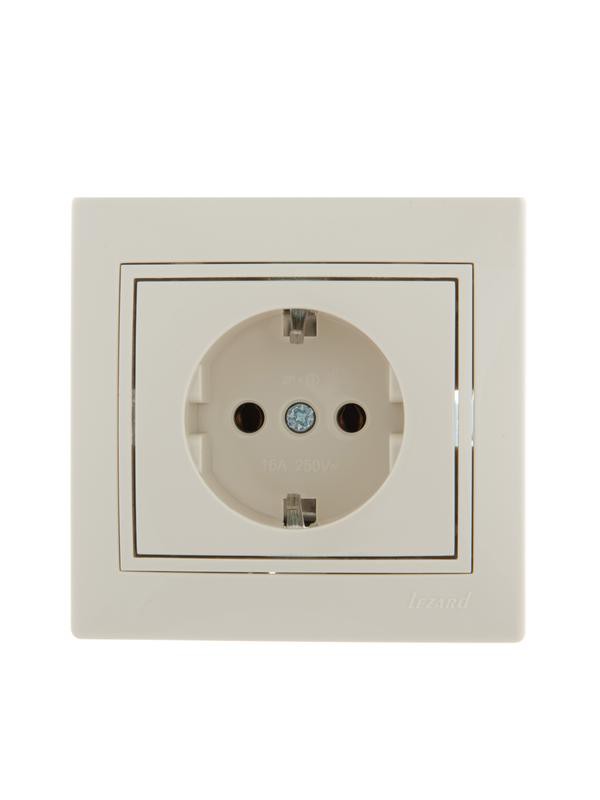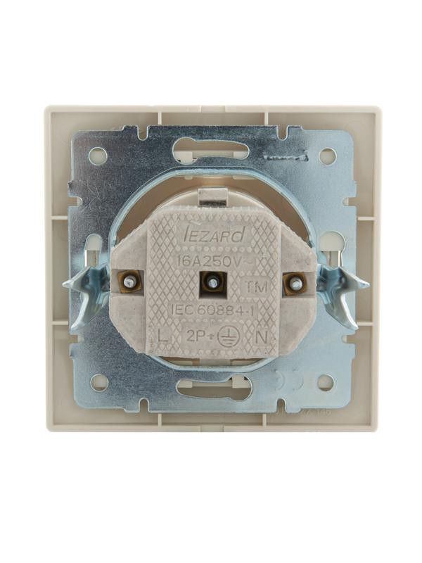 Розетка 1-м СП Mira 16А IP20 с заземл. со вставкой керамика крем. LEZARD 701-0303-122