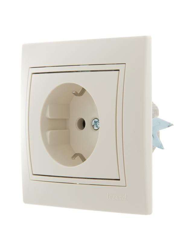 Розетка 1-м СП Мира керам. с заземл. крем/крем. Lezard 701-0303-122 представляет собой электроустановочный механизм одноместной розетки.