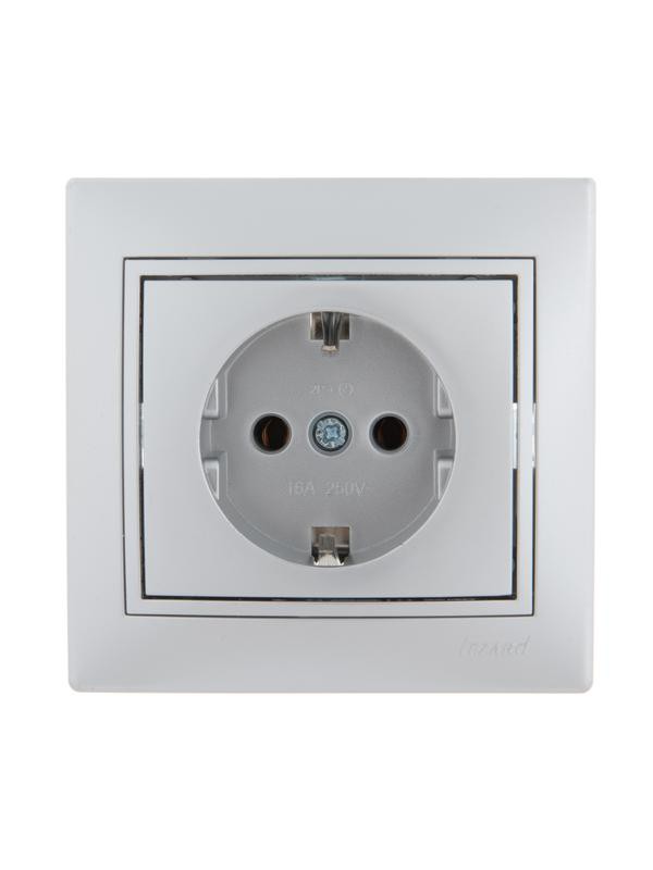 Розетка 1-м СП Mira 16А IP20 с заземл. со вставкой керамика сер. метал. LEZARD 701-1010-122