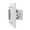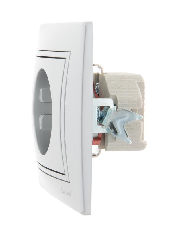 Корпус представляет собой форму из негорючего пластика, шириной 90 мм, цвета блестящий металлик, с защитными шторками, автоматически закрывающими гнезда розетки при вынутой вилке. Подпружиненные лапки крепления обеспечивают комфортный и легкий монтаж изделия. Предусмотрена возможность установки без применения монтажной коробки.