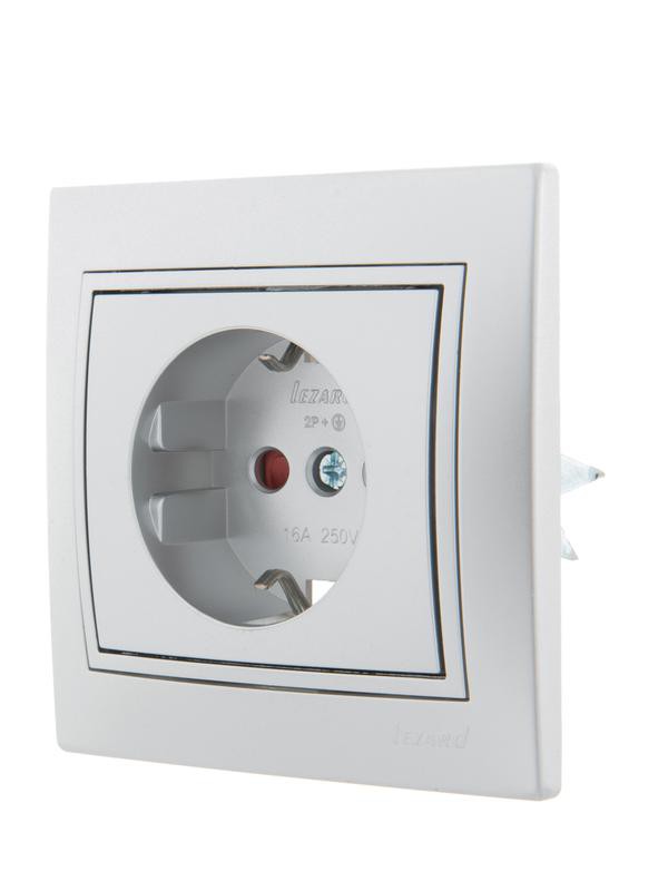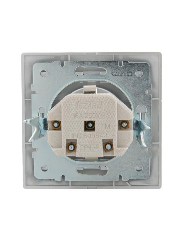 Розетка 1-м СП Mira 16А IP20 с заземл. защ. шторки со вставкой керамика сер. метал. LEZARD 701-1010-124
