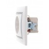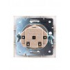 Корпус представляет собой форму из негорючего пластика, белого цвета, с защитными шторками, автоматически закрывающими гнезда розетки при вынутой вилке. Основание керамическое. Подпружиненные лапки крепления обеспечивают комфортный и легкий монтаж изделия. Предусмотрена возможность установки без применения монтажной коробки.