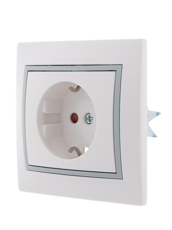 Розетка 1-м СП Mira 16А IP20 с заземл. защ. шторки с сер. вставкой керамика бел. LEZARD 701-0215-124