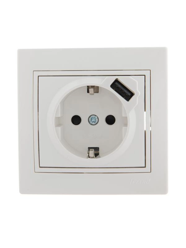Полное описание: Розетка 1-м СП Mira 16А с заземл. + USB разъем бел. LEZARD 701-0202-181