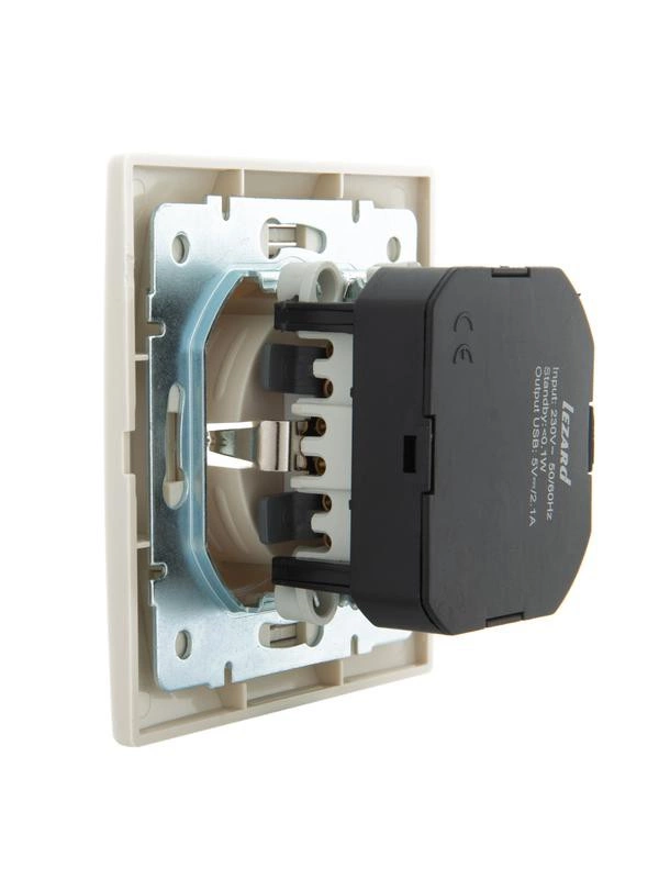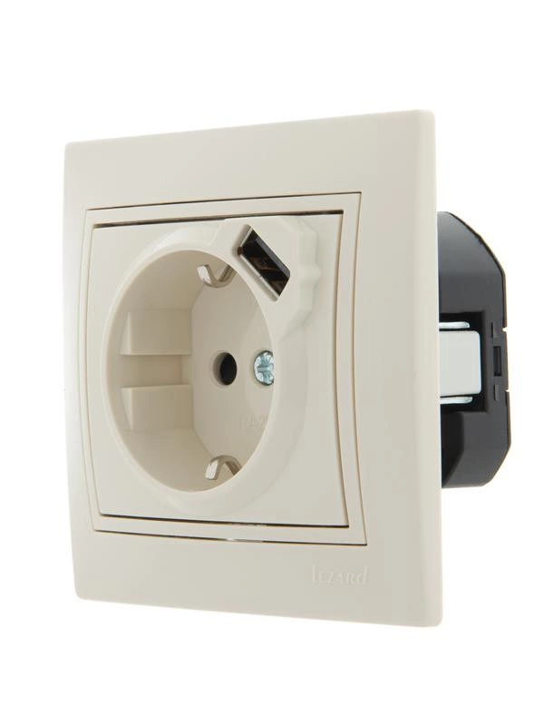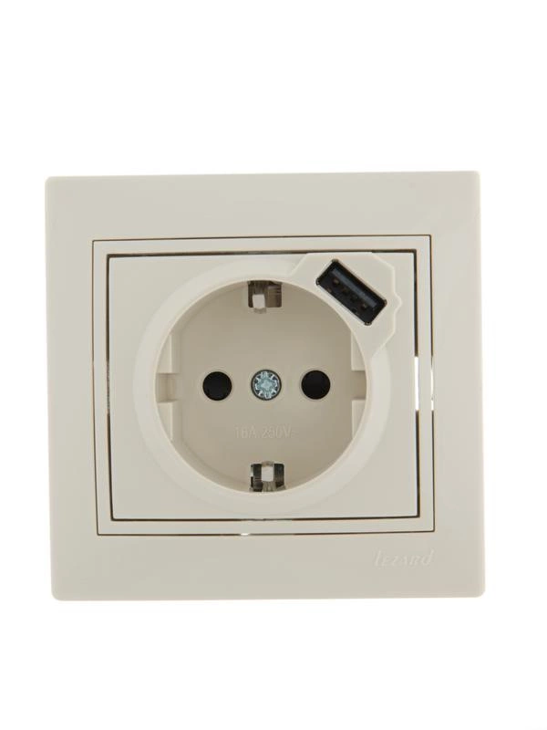 Полное описание: Розетка 1-м СП Mira 16А с заземл. + USB разъем крем. LEZARD 701-0303-181