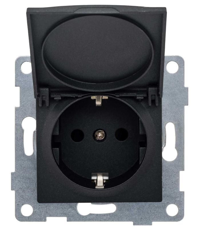 Розетка 1-м СП Ugra 16А 250В с заземл. защ. шторки с крышкой механизм графит GUSI С11Р91-010