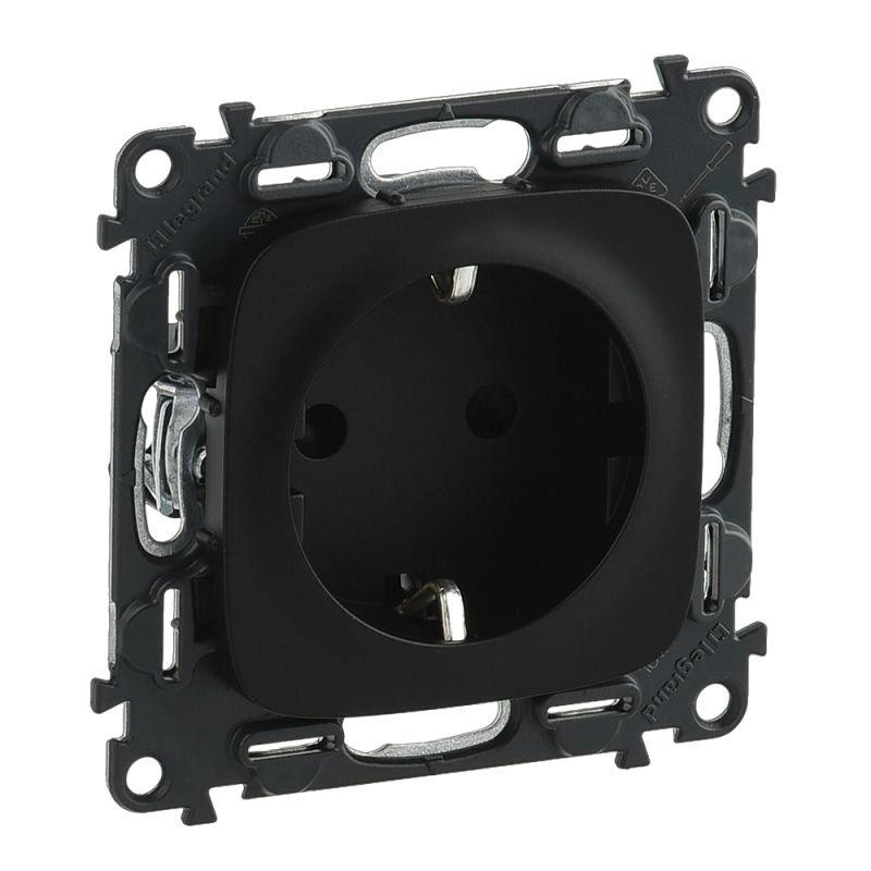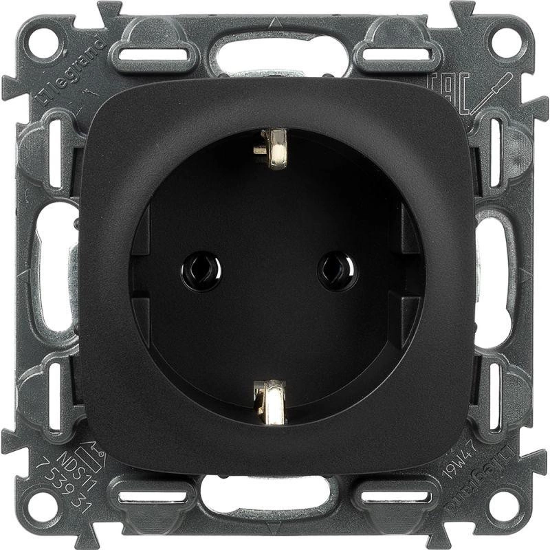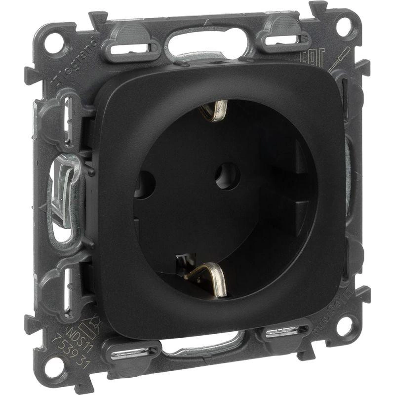 Розетка 1-м СП Valena Allure 16А IP2X 250В 2P+E безвинтов. клеммы с лицев. панелью механизм антрацит Leg 753931