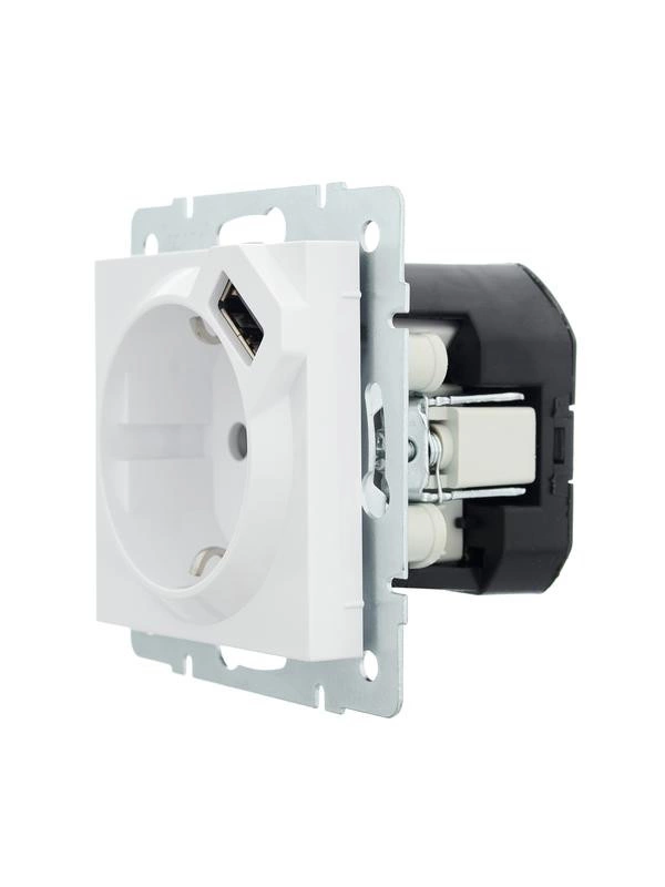 Полное описание: Розетка 1-м СП Vesna с заземл. с заряд. устройством USB механизм бел. LEZARD 742-0288-181