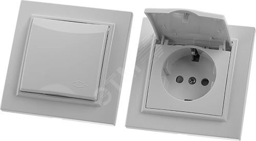 Полное описание: Розетка 1-местная с/з с крышкой, серия Эрна, белый, Stekker