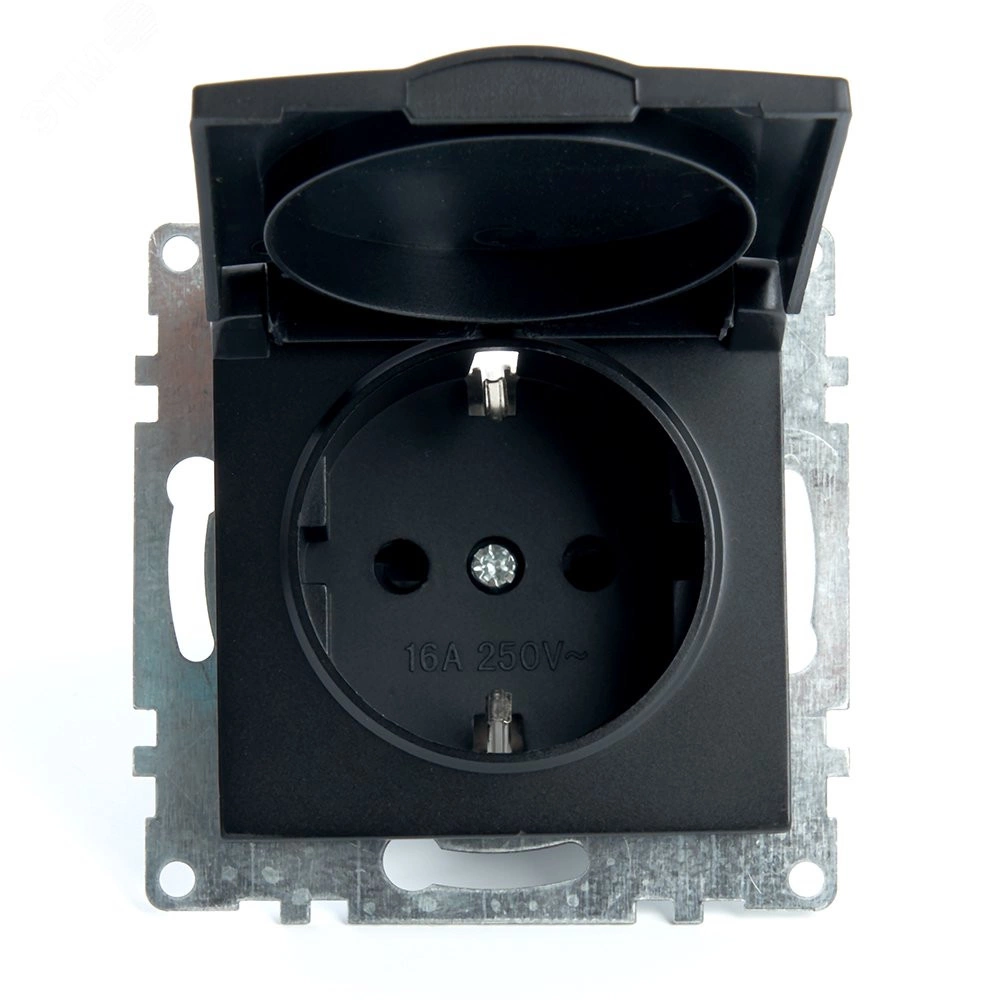 Полное описание: Розетка 1-местная с/з с крышкой, серия Катрин, черный, Stekker