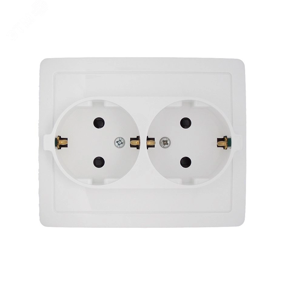 Розетка 15 двойная с заземлением 2х2Р+Е c защитными шторками винтовой зажим 16А 250В белый