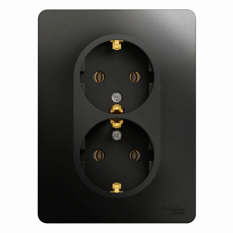 Розетка двойная Schneider Electric Glossa (в сборе, цвет антрацит) с заземлением, без шторок подходит для сетей 250 В, на ток 16 А.