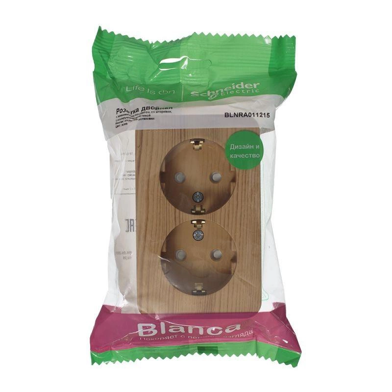 Розетка Schneider Electric BLANCA (ясень, открытой установки) двухместная, с заземлением, шторками и изолирующей пластиной предназначена для сетей до 250В, на ток до 16А. Двухместная розетка позволяет подключить два устройства в одном месте. Шторки и заземление обеспечивают дополнительную безопасность при косвенном прикосновении. Изделия цвета Ясень обладают уникальным рисунком, напоминающим древесный сруб.