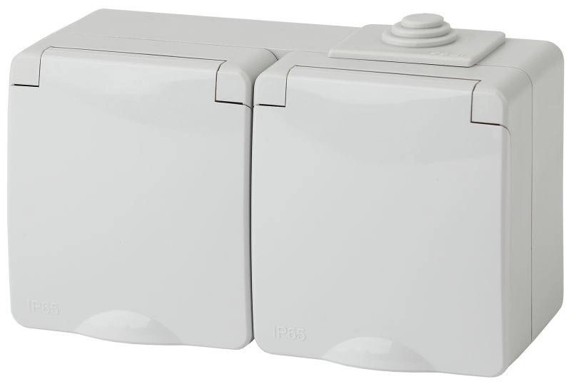 Розетка 2-м ОП Эра Эксперт 11-2603-03 16А IP65 горизонт. 250В 2х2P+E сер. Эра Б0035991