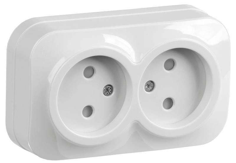 Розетка 2-м ОП GLORY РСш22-2-ХБ 10А без заземл. защ. шторки бел. IEK ERH23-K01-10