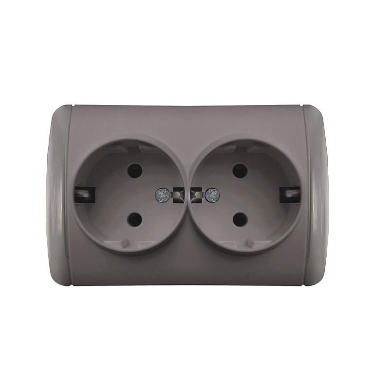 Полное описание: Розетка 2-м ОП Клио 16А IP44 с заземл. сер. UNIVersal К2231-Gr