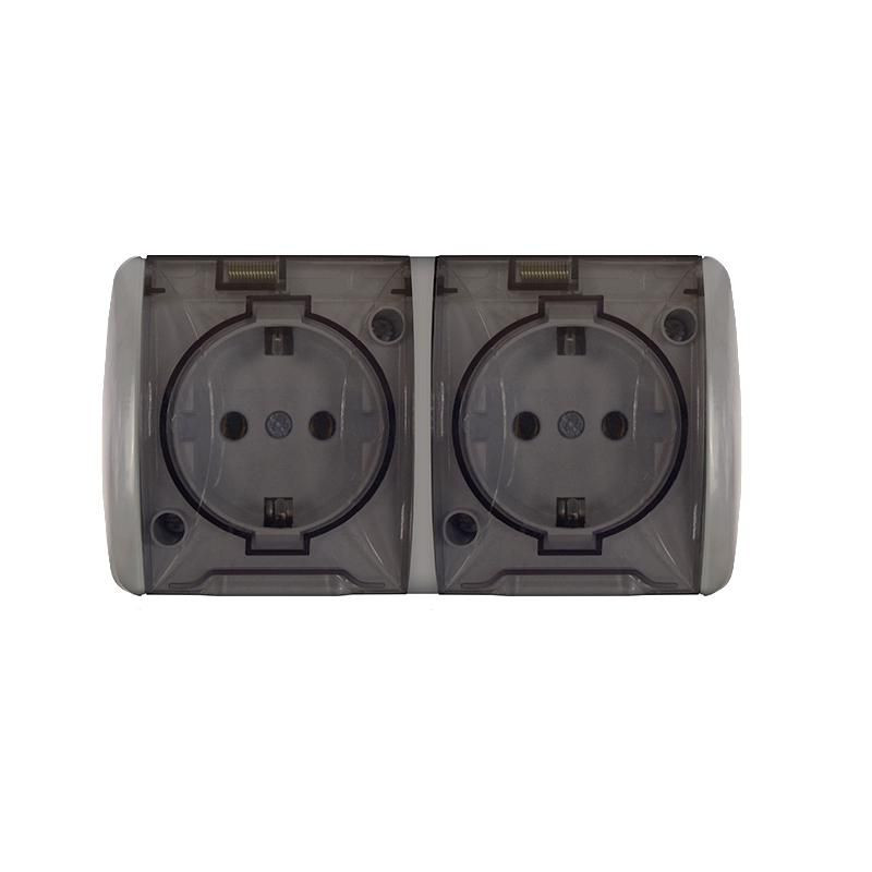 Полное описание: Розетка 2-м ОП Клио 16А IP54 с заземл. с прозр. крышкой сер. UNIVersal К2232-Gr