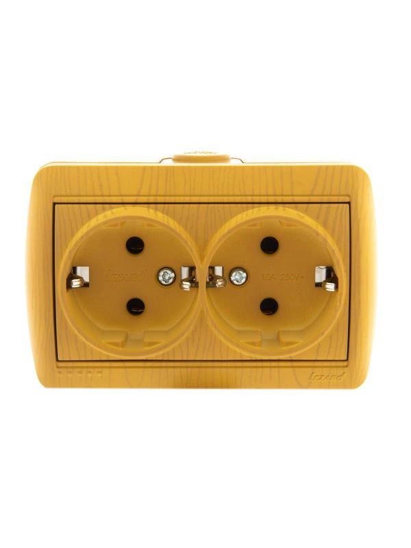 Полное описание: Розетка 2-м ОП Nata 16А IP20 с заземл. керамика ольха LEZARD 710-0700-127