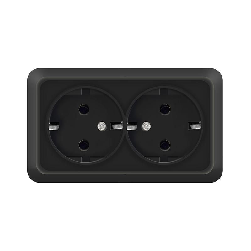 Розетка 2-м ОП Олимп 16А IP20 с заземл. черн. Universal 2216