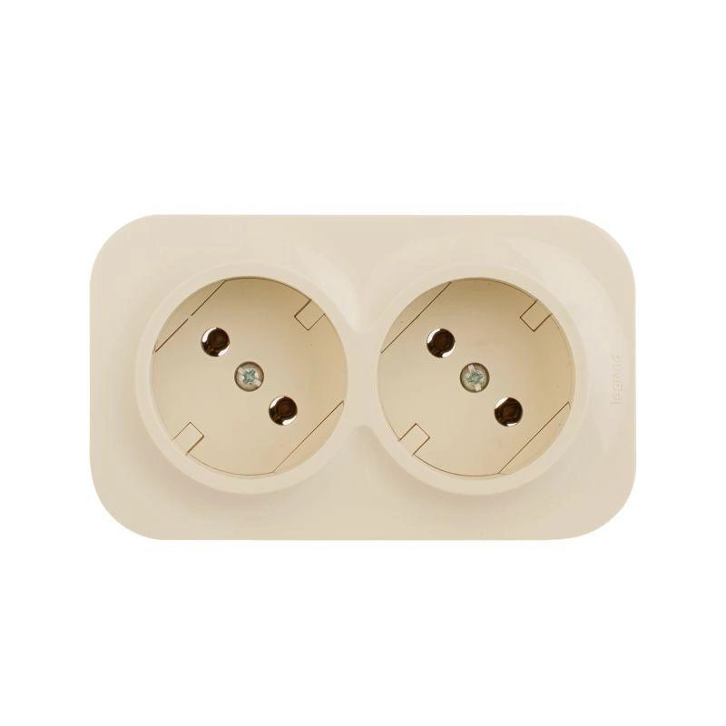 Розетка 2-м ОП Quteo 16А IP20 250В 2х2P без заземл. без защ. шторок сл. кость Leg 782261