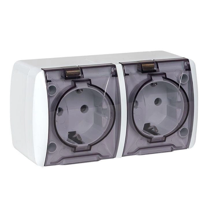 Полное описание: Розетка 2-м ОП Владивосток 16А IP54 с заземл. с прозр. крышкой бел. EKF EQR16-129-30-54-T