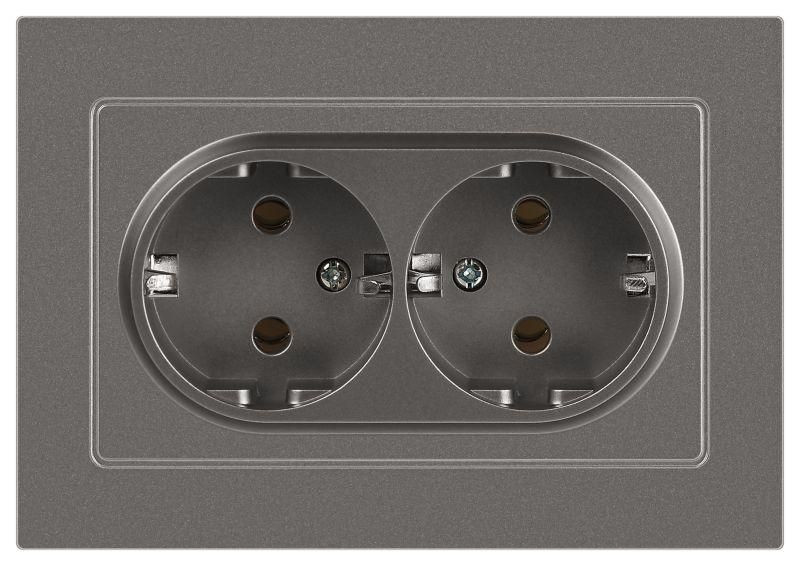 Розетка 2-м СП Accent 6-205-09 16А IP20 250В 2P+E Schuko AL/CU титан Intro Б0063500