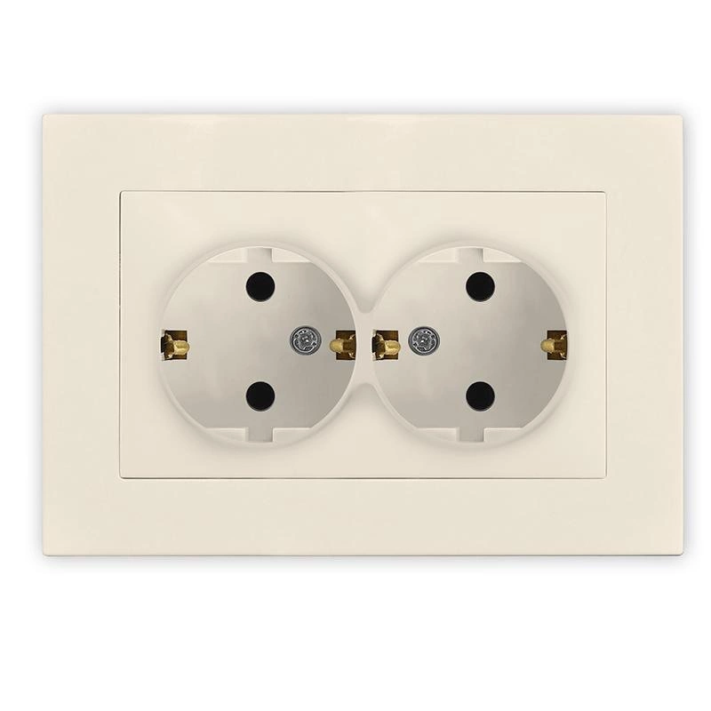 Розетка 2-м СП Афина 16А IP20 с заземл. в сборе сл. кость (ivory) Universal A0128-I