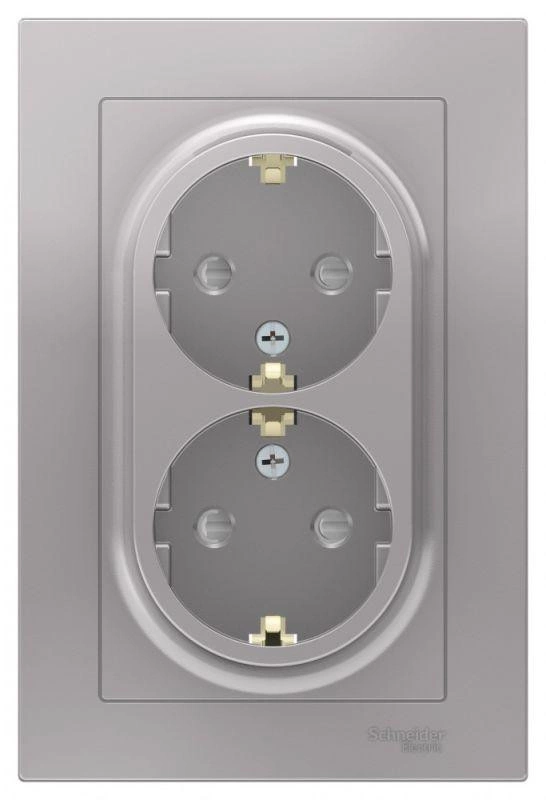 Полное описание: Розетка 2-м СП AtlasDesign 16А IP20 с заземл. защ. шторки в сборе алюм. SchE ATN000326