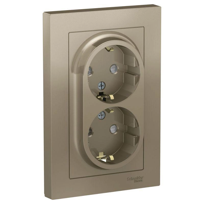 Полное описание: Розетка 2-м СП AtlasDesign 16А IP20 с заземл. защ. шторки в сборе шампань SchE ATN000526