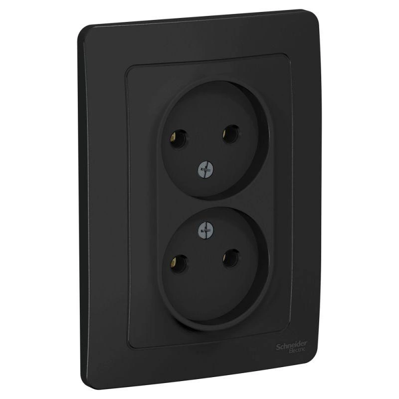 Розетка Schneider Electric BLANCA (антрацит, скрытой установки) двухместная, без заземления и шторок предназначена для сетей до 250В, на ток до 16А. Двухместная розетка позволяет подключить два устройства в одном месте. Она изготовлена из ABS-пластика, проста в установке и удобна в применении.