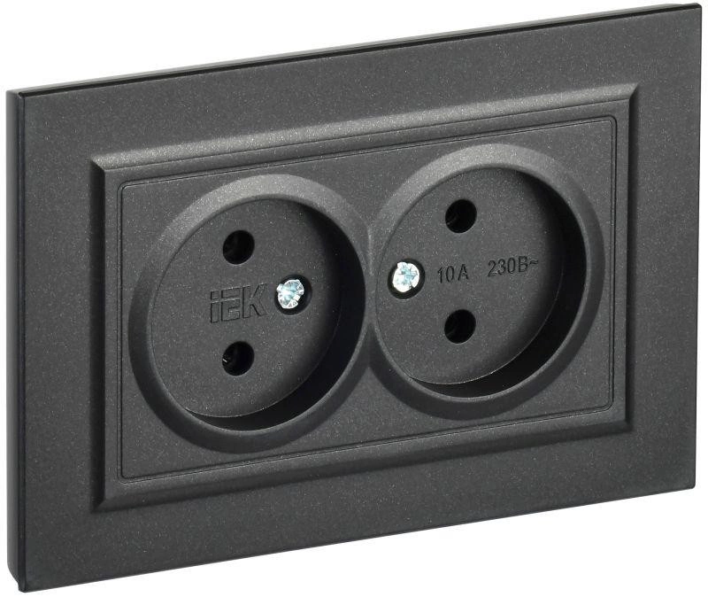 Полное описание: Розетка 2-м СП BRITE РС12-2-БрЧ 10А в сборе без заземл. без защ. шторок черн. IEK BR-R20-10-K02-F