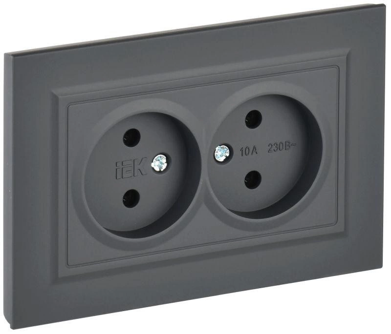 Полное описание: Розетка 2-м СП BRITE РС12-2-БрГ 10А в сборе без заземл. без защ. шторок графит IEK BR-R20-10-K53-F