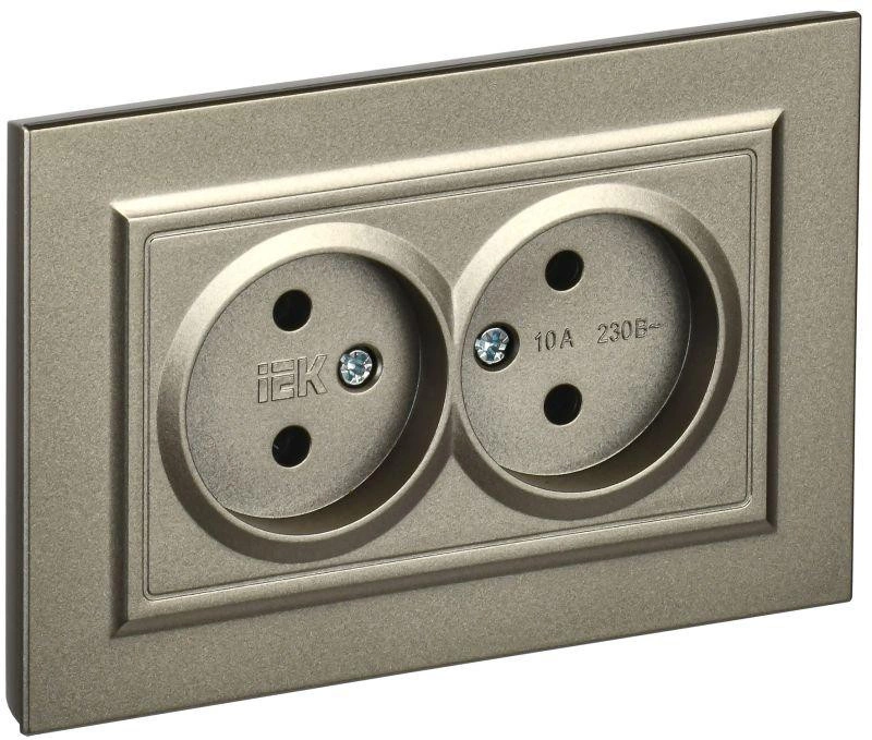 Полное описание: Розетка 2-м СП BRITE РС12-2-БрШ 10А в сборе без заземл. без защ. шторок шампань IEK BR-R20-10-K37-F